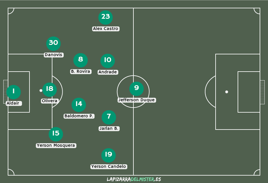 Para Guillermo Montoya Callejas el equipo ‘verdolaga’ debería armar un once titular alrededor de Jarlan Barrera y Andrés Andrade que quedaría de la siguiente Manera: