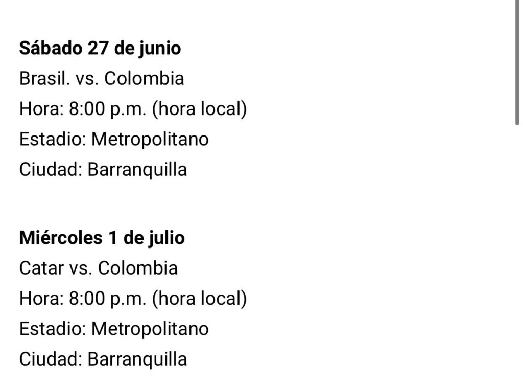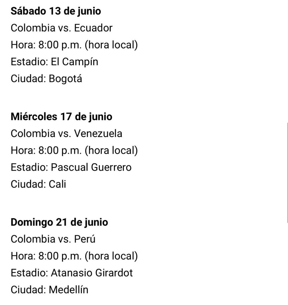 La ‘tricolor’ ya conocía la fecha y el estadio donde enfrentaría sus partidos, pero faltaba conocer los horarios para dichos compromisos que quedaron de la siguiente manera: